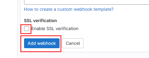 登录GitLab,进入viteress项目,现在左侧导航栏“Settings→Webhooks”,将前面记录的GitLab webhook URL地址填入URL处,禁用SSL认证